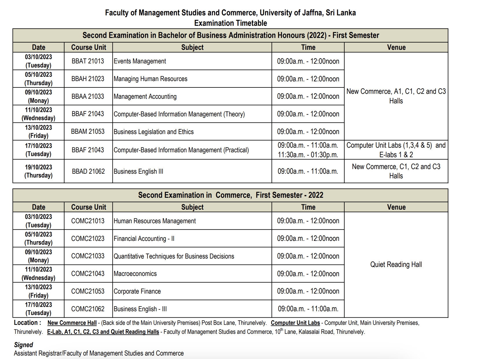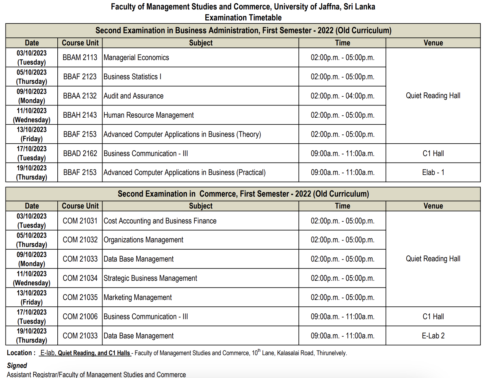 13Sep2023Second Examination in Business Administration/Commerce, First Semester – 2022 (Old&New)ByEditor FMSC-UoJNotices, Students2023, Examination Timetable0