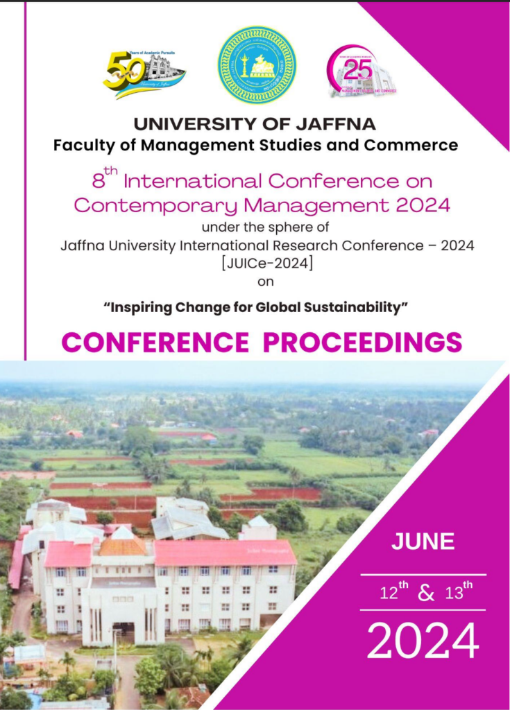 8th International Conference on Contemporary Management (ICCM – 2024) [PDF] Under the sphere of Jaffna University International Research Conference -2024 (JUICe-2024) June 12th and 13th, 2024