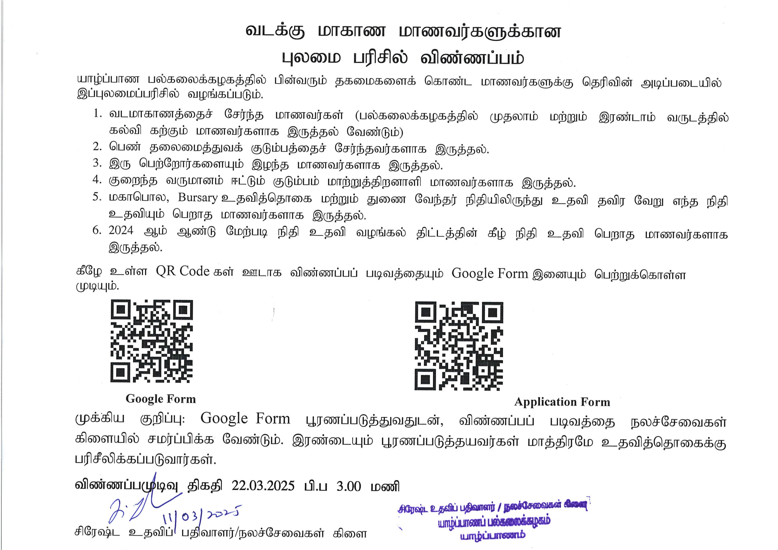14Mar2025Inviting Applications for the Scholarship for Northern Province StudentsByEditor FMSC-UoJNotices, Students0
